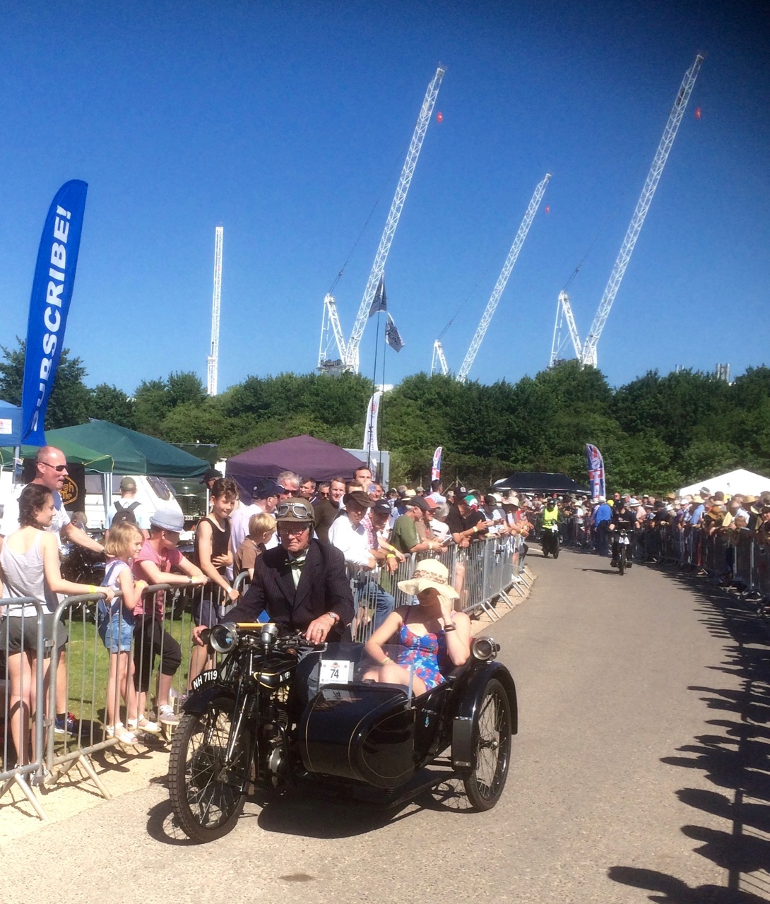 A few phone shots, my camera packed up for some reason? I went for a bimble along the country lanes with the old bikes, some make good progress, others chuff away and inevitably quite a few by the side of the road being fettled. Quite easy to follow the groups, just look at which direction the oil trails go at junctions Some of the riders must have been roasting; I had fully vented textiles on and was very hot on the ride back at modern speeds, lots were in heavy wool period costume and only doing about 30-40mph
