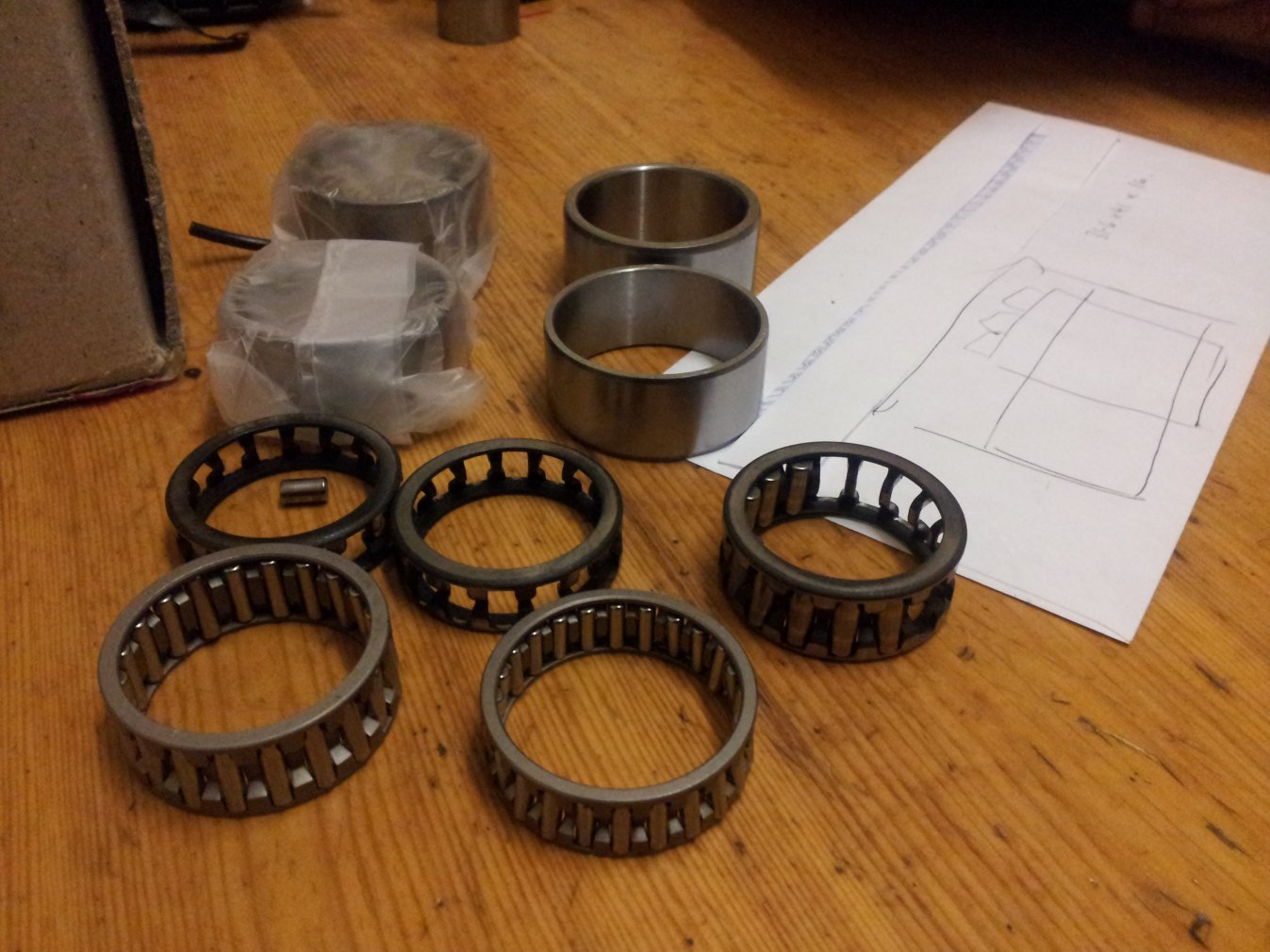 time marches on slowly .right von now has a working big end refurb set up for early XB,s and tuber taper cranks regarding bearings .the pics show the set up for XB,s regarding pin ,the pin is a slightly oversized on the flywheel sides to accomadate for strained or broched flywheels, the pins will be made from EN 36 ,case hardened 40 thou deep and as stated above, slightly oversize to accomadate danged flywheels ,pins will be finnised to size in house ,bearing cage are of vons design and one piece for strength and will be copper then silver plated and de-embrittled to def standerd ,i will fit one in grumbly and another in my spare motor ,normski in newark will get the first set on a taper pin crank ,the pin in the pics is a working mock up