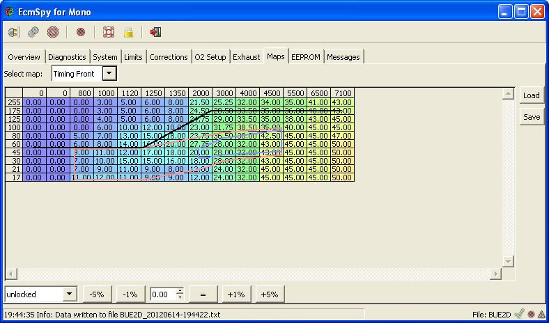 The other option of course would be to start the combustion earlier on the over-run by advancing the ignition, so I looked at the ignition map and to my surprise I saw this: