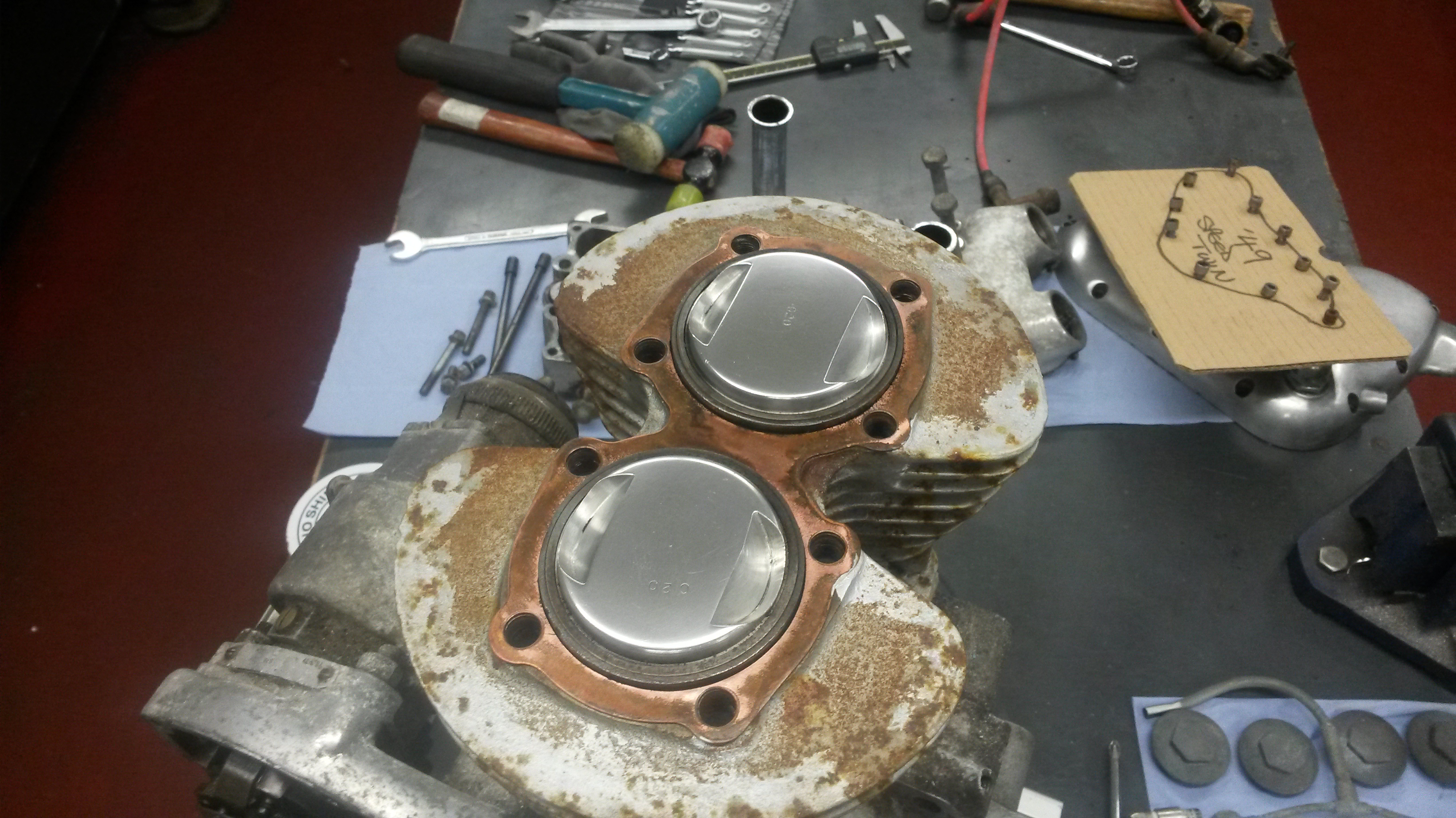 I stripped the gearbox again, just to polish the cases. It's been sitting in the garage which is damp and cold and it was getting furry. It's now back to how it was before.