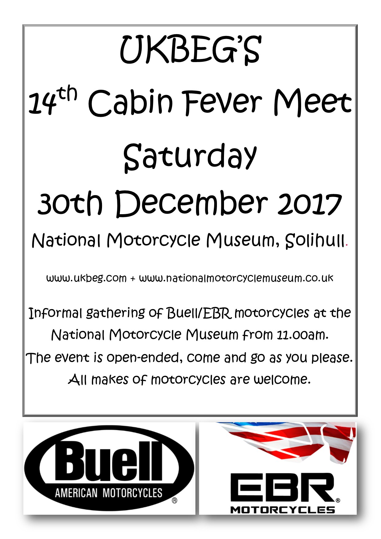 This will be UKBEG's 14th Cabin Fever meet held at the National Motorcycle Museum, Solihull.