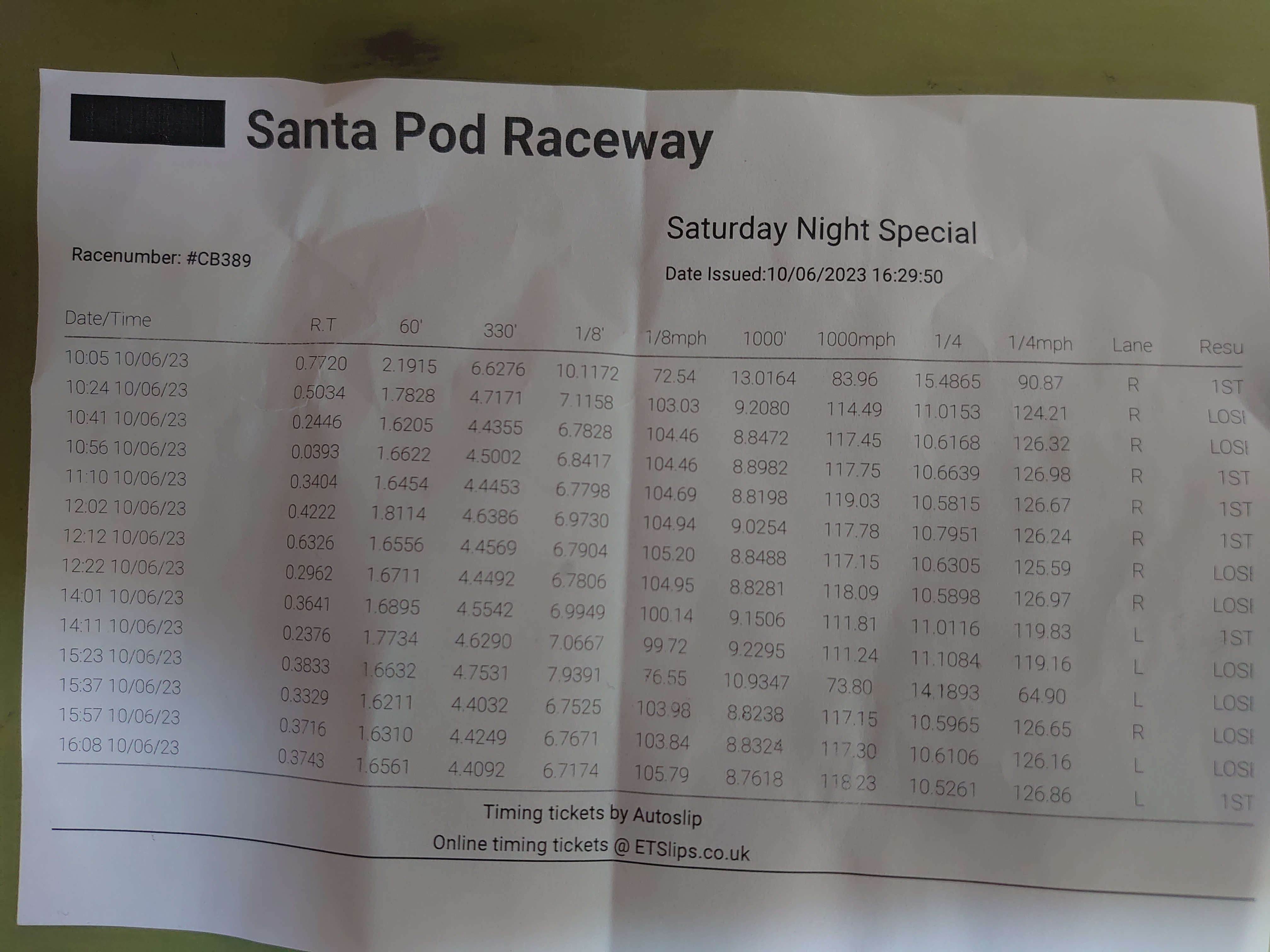 Here's my time slip from yesterday, it's all fairly explanatory but I'll go through it for those who might be interested or unfamiliar with how drag racing works,