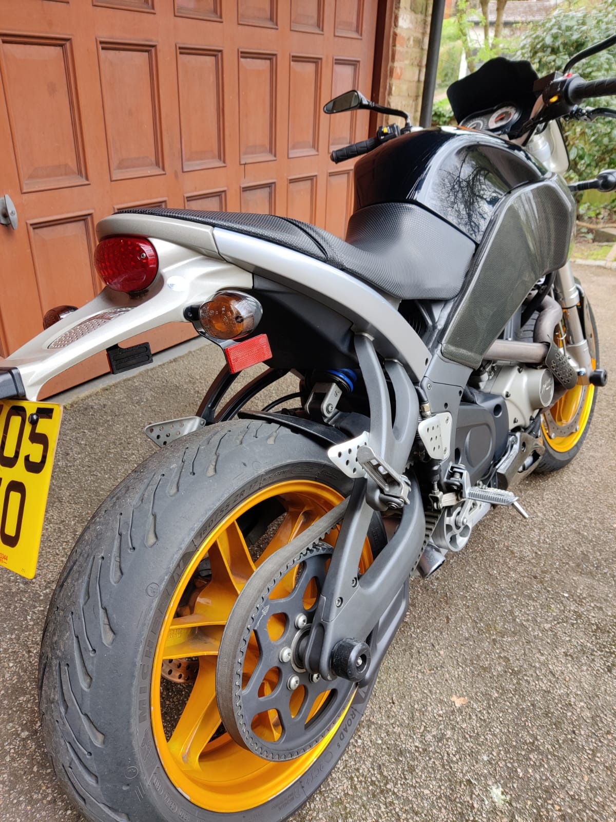 After 15 years, I think that it is time for a change, so before I market it elsewhere, if any UKBEGers are interested, just let me know. Briefly: Black with gold wheels. MY2005 24,950 miles, MOT August. Datatool System 3, HD Race muffler, Race CPU. Free Spirits tensioner, K&N air filter, Oberon adjustable levers. Carbon frame covers, bellypan, fender, extended flyscreen. Owner's manual, 2 keys, MOT history, receipts, tool kit.